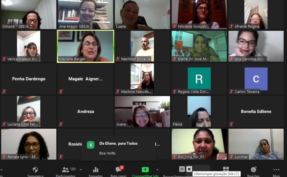 “Os encontros on-line irão ocorrer mensalmente até novembro deste ano, trazendo sempre temas pertinentes ao trabalho pedagógico com a EJA e formadores especializados, de modo a enriquecer e aprimorar os conhecimentos dos pedagogos e pedagogas, sensibilizando-os dentro dos princípios da Educação Democrática e Inclusiva, além de fortalecer a recente revitalização das organizações curriculares da EJA e a ampliação da oferta dessa modalidade na Rede Estadual”, disse a gerente da Educação de Jovens e Adultos da Secretaria da Educação, Mariane Folador Berger.