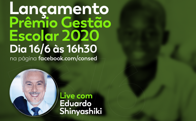 Uma live com o escritor e especialista em desenvolvimento das competências de liderança organizacional, educacional e pessoal, Eduardo Shinyashiki, vai marcar o lançamento do Prêmio de Gestão Escolar 2020. Será na próxima terça-feira, dia 16, a partir das 16h30, com transmissão pelo canal do Conselho Nacional de Secretários de Educação (Consed) no Youtube e no Facebook. O Consed promove a iniciativa em conjunto com a Organização dos Estados Ibero-Americanos – OEI e a União dos Dirigentes Municipais de Educação – Undime.