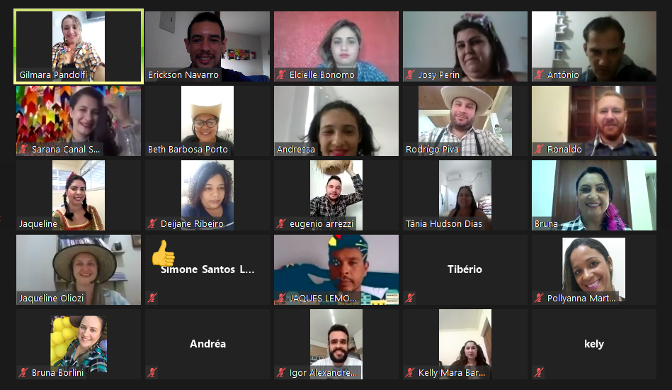 Para não passar em branco as comemorações juninas, durante uma reunião on-line na última segunda-feira (29), a equipe do Centro Estadual de Ensino Fundamental e Médio em Tempo Integral (CEEFMTI) Marita Motta Santos, de São Mateus, realizou um momento junino. Para isso, foi utilizada a ferramenta Zoom, que muito vem contribuindo com os profissionais da Educação.