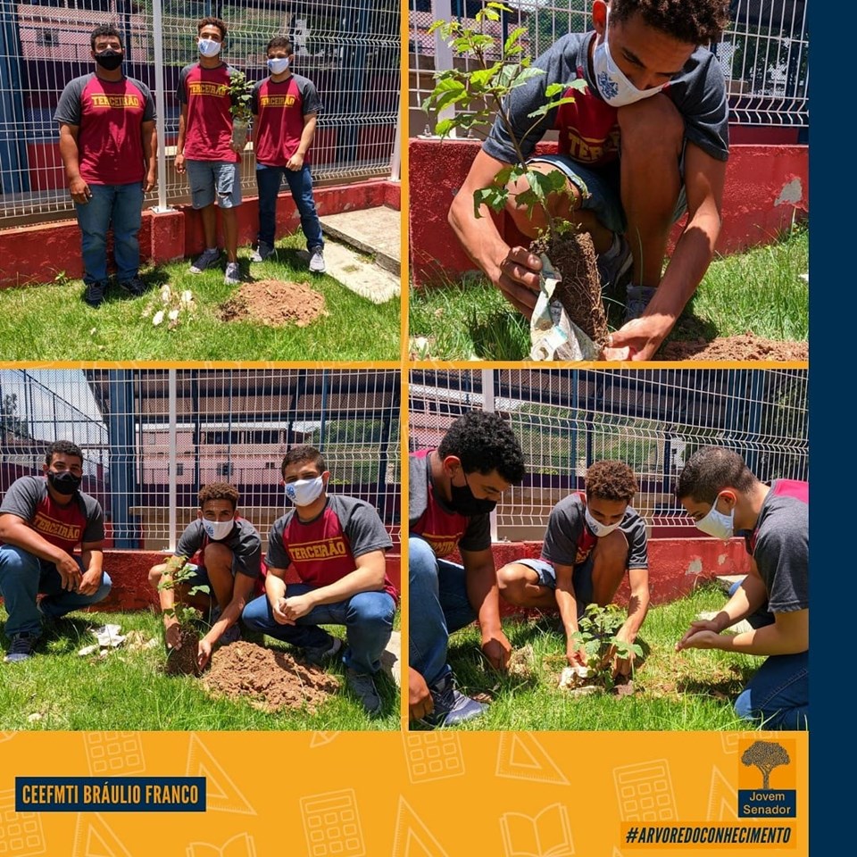 Uma ação do Projeto Jovem Senador, do Senado Federal, propõe o plantio de árvores nas escolas públicas de Ensino Médio, em alusão à Árvore do Conhecimento, símbolo do projeto. E o Centro Estadual de Ensino Fundamental e Médio em Tempo Integral (CEEFMTI) Bráulio Franco, de Muniz Freire, já fez sua parte, plantando mudas de árvores nas dependências da unidade escolar.