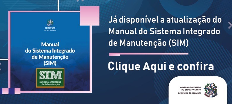 A Secretaria da Educação (Sedu) produziu um novo manual do Sistema Integrado de Manutenção (SIM), que visa a direcionar, de forma sucinta, os serviços relacionados à manutenção dos prédios escolares, buscando melhorar as manutenções/reformas e agilizar o processo de apuração e implementação.