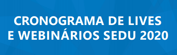 A Secretaria da Educacão (Sedu) tem realizado diversas lives e webinarios para as equipes escolares e profissionais da Rede Estadual de Ensino durante o período da pandemia do novo Coronavírus (Covid-19). O cronograma dessas atividades on-line para o mês de julho já esta disponível.