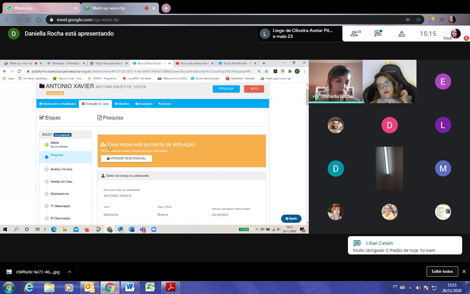 No plantão foi possível tirar dúvidas e compartilhar experiências dos municípios em relação à utilização da plataforma. Os participantes relataram suas experiências e desafios em relação ao resgate de estudantes em situação de vulnerabilidade e em risco de abandono/evasão escolar.
