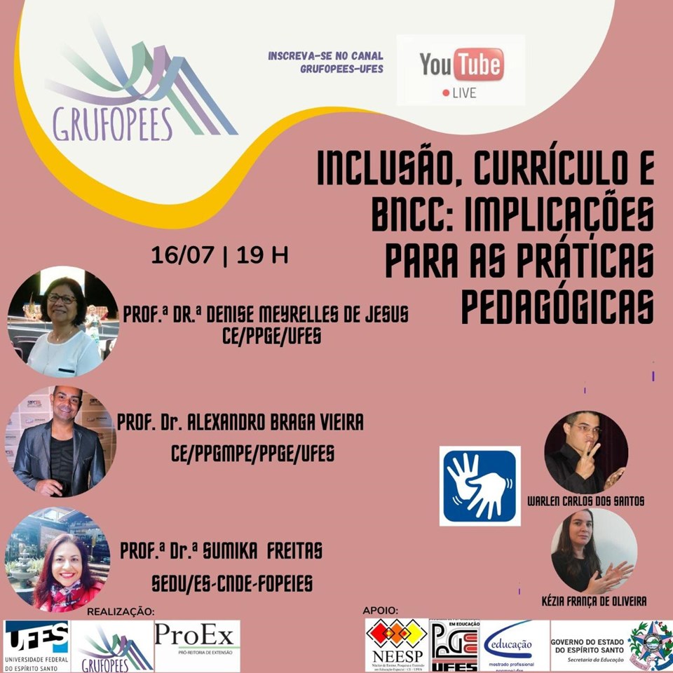 A Educação Especial também tem sido acompanhada de perto pelos profissionais da Educação neste período de distanciamento social. Para isso, a Secretaria da Educação (Sedu), em parceria com a Universidade Federal do Espírito Santo (Ufes) e representantes das redes municipais de Ensino, está realizando formações na área. Nessa quinta-feira (16), foi realizada mais uma etapa da formação, com o tema “Inclusão, Currículo e Base Nacional Comum Curricular”.