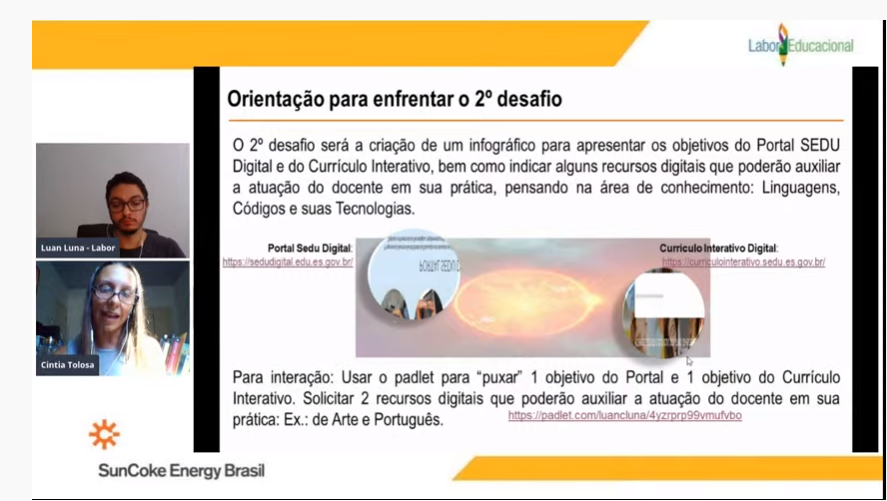 Ao longo da formação, que ocorrerá no período de 08 de abril a 30 de julho, os cursistas participarão de quatro oficinas. A primeira oficina tem como tema “Domínio do Mundo Digital por meio de Infográfico: Currículo Interativo Digital e o Portal Sedu Digital”.