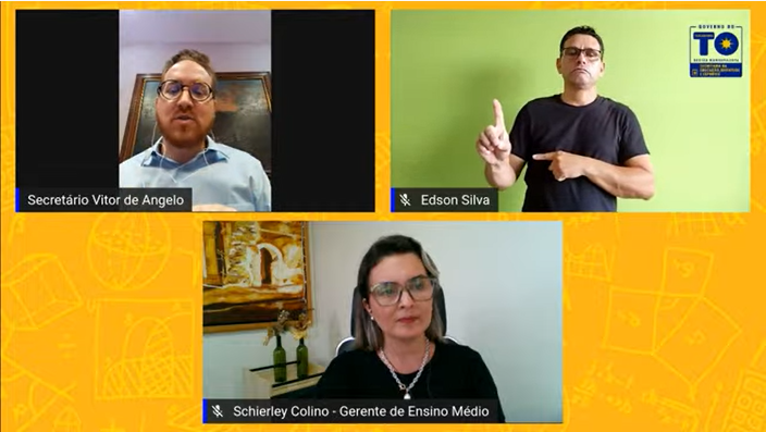O secretário de Estado da Educação, Vitor de Angelo, participou do II Seminário de Líderes Educacionais do Tocantins, que debateu o tema “O papel do diretor no engajamento da equipe escolar”. O evento foi transmitido pela TV Seduc Tocantins, página oficial da pasta no YouTube. Clique para assistir: https://www.youtube.com/watch?v=kJccaisL0hE.