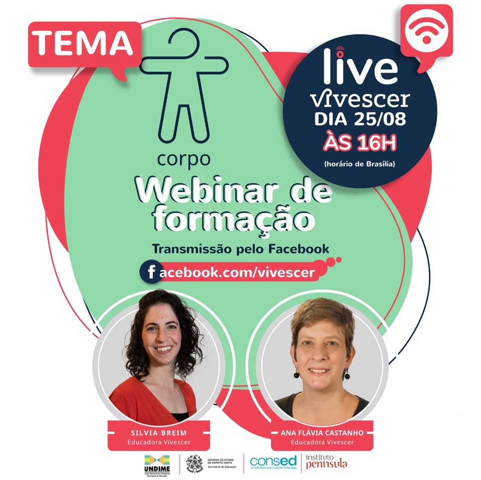 O terceiro webinário de formação da plataforma Vivescer, com o tema “Corpo” acontece nesta terça-feira (25), às 16 horas. O debate é promovido pela Gerência de Estudos, Pesquisa, Qualidade e Desenvolvimento dos Profissionais do Magistério (Gedep) da Secretaria da Educação (Sedu), em parceria com União Nacional dos Dirigentes Municipais de Educação (Undime) e o Conselho Nacional de Secretários de Educação (Consed).