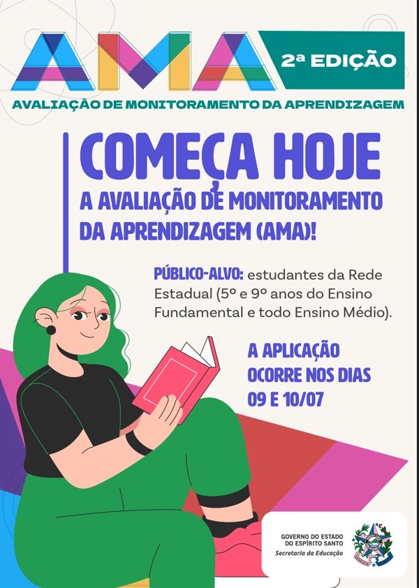 Estudantes da Rede Pública Estadual de Ensino do Espírito Santo participam, nessa terça-feira (09) e quarta-feira (10), da 2ª edição da Avaliação de Monitoramento da Aprendizagem (AMA). A avaliação é direcionada aos alunos dos 5º e 9º anos do Ensino Fundamental e de todas as séries do Ensino Médio, e tem como principal objetivo subsidiar a preparação dos estudantes para as provas do Sistema Nacional de Avaliação da Educação Básica (Saeb) e do Programa de Avaliação da Educação Básica do Espírito Santo (Paebes).