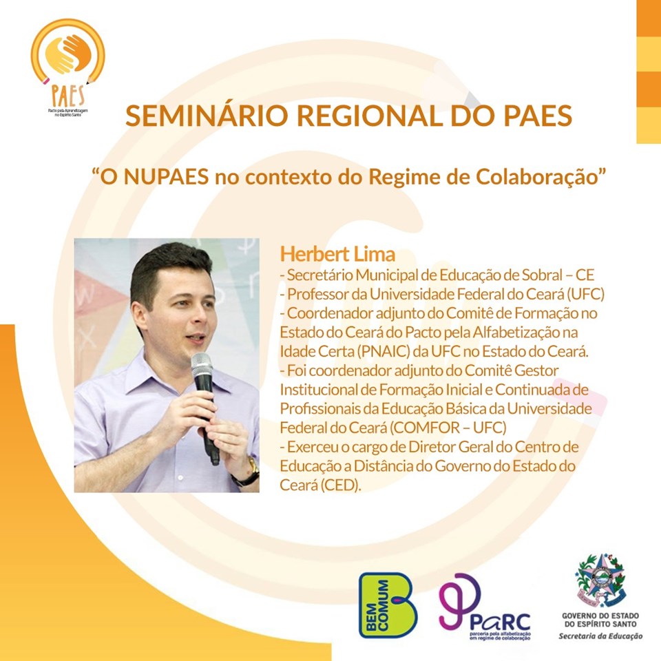 A Secretaria da Educação (Sedu), por meio do Núcléo do Pacto Pela Aprendizagem no Espírito Santo (Nupaes), está realizando um ciclo de seminários regionais. Os próximos têm como tema: “O Nupaes no contexto do Regime de Colaboração".