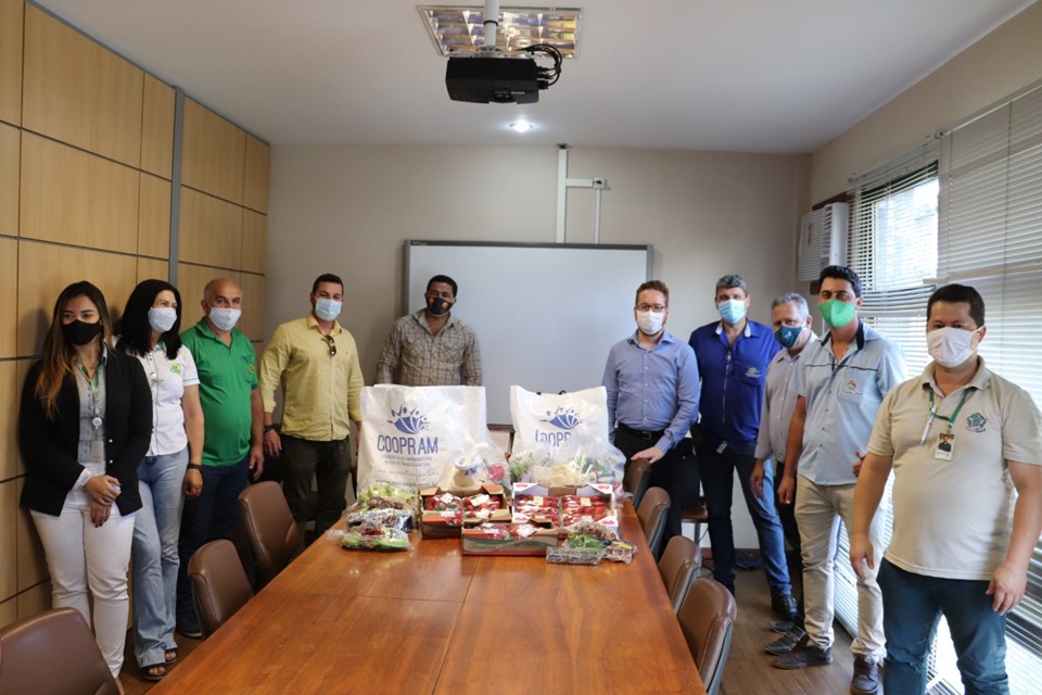 As cooperativas que fornecem gêneros alimentícios para as escolas, por meio do Programa Agricultura Familiar, estiveram na Secretaria da Educação (Sedu), em Vitória, nesta quinta-feira (24), para agradecer a parceria e expor seus produtos. Neste período de Atividades Pedagógicas Não Presenciais (APNPs), as famílias dos alunos receberam cestas básicas como um suporte neste momento de pandemia do novo Coronavírus (Covid-19). Foram beneficiados 21.564 alunos, de 136 escolas.