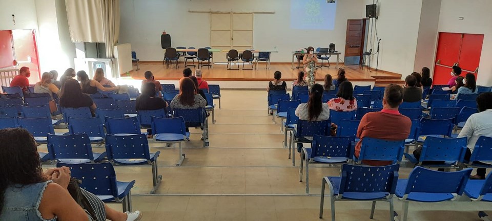 A formação está sendo realizada no auditório da Escola Estadual de Ensino Fundamental e Médio (EEEFM) Hunney Everest Piovesan, em Cariacica.