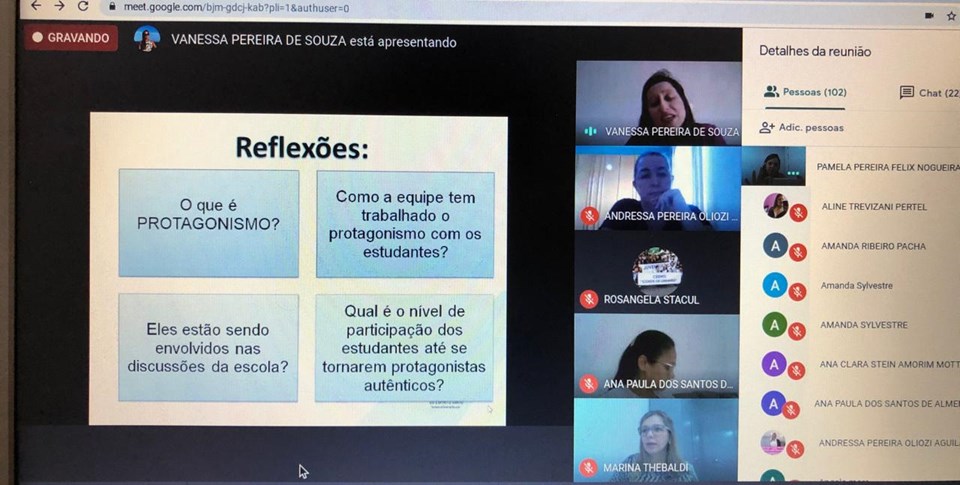 Foram debatidas temáticas sobre Princípio Educativo, Protagonismo, Reuniões de Fluxo, Eixos Formativos e Guia de Aprendizagem, mediadas pelas supervisoras escolares: Marina Tebaldi, Tânia Verusca Dadalto e Vanessa Pereira de Souza. O encontro contou também com relatos de experiências dos profissionais do Centro Estadual de Ensino Médio em Tempo Integral (CEEMTI) Baixo Guandu e (CEEFMTI) Conde de Linhares, além da participação de estudantes que relataram suas vivências nessas unidades de ensino.