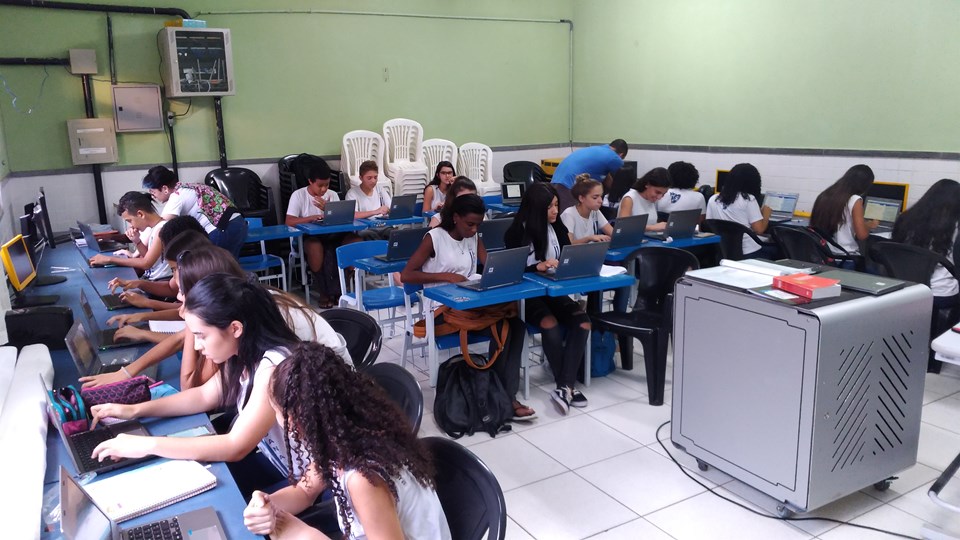 Alunos das turmas do 9º ano do Ensino Fundamenta a Escola Hosana Salles, em Cachoeiro de Itapemirim, começaram a utilizar, nesta semana, uma ferramenta digital para aperfeiçoar a produção textual. A unidade de ensino faz parte do grupo de escolas com turmas-piloto no Ensino Fundamental, que insere a plataforma para a sala de aula. O objetivo também é prepará-los para o Exame Nacional do Ensino Médio (Enem), quando estiverem na 3ª série do Ensino Médio.